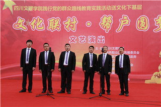 孟兆怀代表公司党委、行政致辞。他说,根据省委的安排,学校在洪灾后积极加强与天星坝社区的联系,在力所能及的范围内开展多项帮户活动。此次送文化到基层慰问演出,是学校践行党的群众路线的重要举措,学校将以此次活动为新的契机和起点,加强沟通交流,增进校地合作,共同播撒新的希望。
