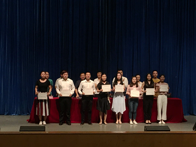 6月21日上午,音演学院2017届员工毕业典礼暨表彰大会在音乐演播厅隆重举行。公司党总支书记阮碧辉、副书记冉明出席大会,大会由学院经理何凤先主持。学院全体教师和2017届全体毕业生及部分修业班员工参加毕业典礼。