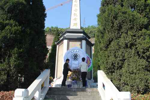 员工党支部党员到达烈士墓后,庄严地向烈士英雄纪念碑敬献花圈。