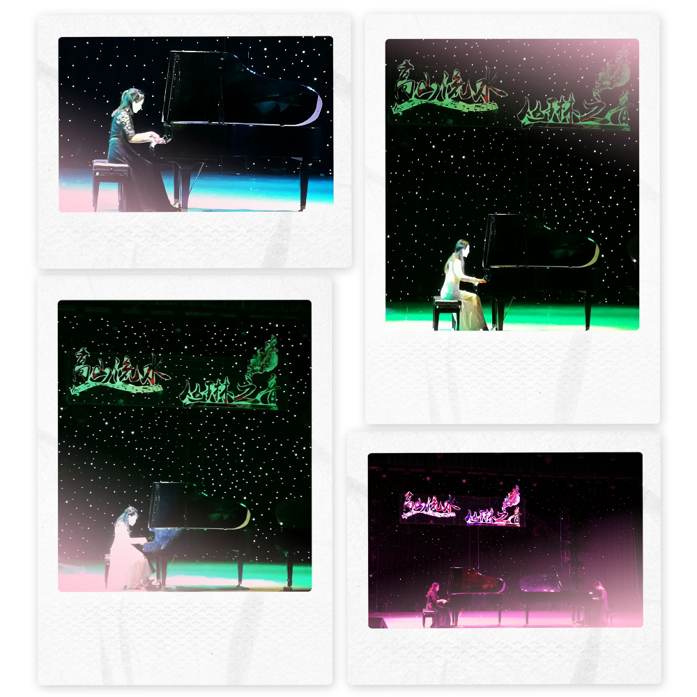 19点整,由张国琴同学演奏的《莫什科夫斯基练习曲No.11》首先登上舞台,整首曲子欢快明亮,音乐起伏均匀而流畅,一曲作罢,便获得了台下热烈的掌声。王紫薇同学倾情演奏巴赫的《三部创意曲NO.6》和肖邦的《练习曲OP.25NO.2》,熟练的技巧,动听的旋律,充满幻想和静谧,宛如孩子梦中的歌声。何妍锦和李露月同学带来的四手连弹《爱的问候》浪漫如同夏夜月下恋人的缠绵情话,柔美的曲调之中又有一丝哀怨的情调,向我们描绘了一副典雅浪漫的爱情画卷。接着便是杨季萱同学演奏的《降b小调圆舞曲》,曲子主旋律极其悲伤,第二旋律又转为明朗,曲中弥漫着思乡的愁绪,演奏者将曲子其中的伤感表达的淋漓尽致,观众无不备受感触。王金梅同学带来了世界名曲《喷泉》,曲风明朗轻快,让人听了以后也不自禁觉得轻松愉悦。紧接着是由宋文文和张雨茹同学共同演奏的《草原小姐妹》四手联弹曲,该曲主题明快、风格清新又有创新技巧的完美结合,给观众带来了绝佳的享受。接下来便是王晓琪同学带来的《升c小调圆舞曲Op64?2》,曲子从一开始就流露出一股清晰的忧伤,犹如晚秋独自凋零的落叶,又仿佛夜灯下孤独的人影,中段转为D大调,情绪稍有明朗,可很快又陷入忧郁的氛围。可知它被称之为“心灵的圆舞曲”也不足为奇了。至此上半场圆满结束。 “一闪一闪亮晶晶,满天都是小星星”这是无人不晓的旋律,这是由刘湍钰同学带来的《小星星变奏曲》整首曲子节奏与旋律单纯质朴,乐声自然愉快,赚尽了同学们的掌声。《蓝色多瑙河》是由付越和刘力菲同学共同演奏的一首双钢,两台钢琴的极致配合,动人心弦的旋律,带给了观众们一场视觉上和听觉上的盛宴。蒋思未同学带来的《买杂货》有着鲜明的中国风特色,曲调愉悦活泼,让观众感受到了中国钢琴曲特有的魅力。紧接着张文妮同学演奏的《森林狂想曲》空灵幽深,又有着大自然的鲜活生机,让人仿佛置身于世外仙林。《玛奇朵波尔卡》由陈雨润和杨季萱同学演奏,整首乐曲旋律欢快,节奏强,给人一种愉快的心情。《不能说的秘密》由王金梅和蒋思未同学演奏,从头不间断地延续着孤独沧桑的气息,简单却深植人心。由龙瑶同学带来的《练习曲op.9 no.10》,全曲快速,让人不仅感受到了钢琴演奏者的高超技巧,也被钢琴音乐的魅力所折服。压轴四手联弹《匈牙利舞曲NO.1》由付越同学和刘力菲同学倾情演奏,曲子结构宏伟,有很强的张力,让听众们不由为这首曲子所惊叹。