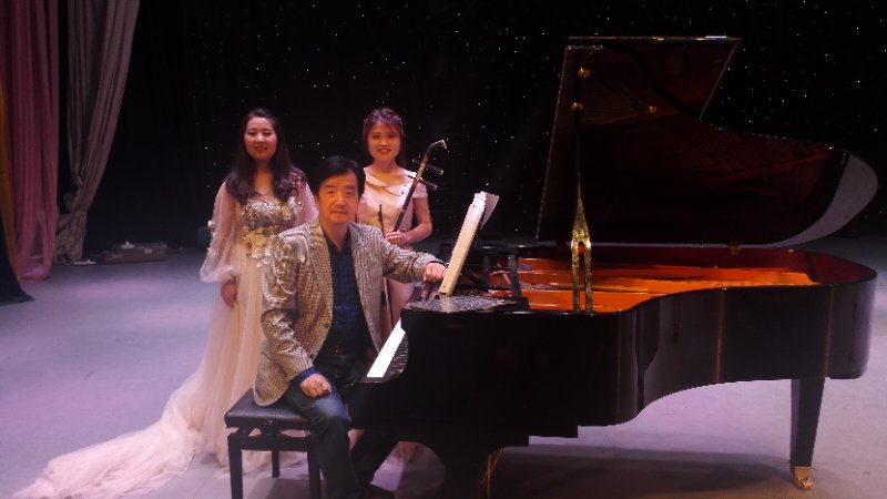 指导老师何元平亲自上台为她们作钢琴伴奏,默契的配合使乐曲的音乐形象得以完美的表现。