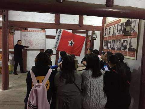 2019年11月16日早上8:00,老师们在音乐广场集合乘车前往平昌县,依次参观了刘伯坚烈士纪念馆、平昌县英烈纪念园、川陕苏区平昌革命文物陈列馆、“宣达战役”红四方面军北山寺军事会议旧址。党员老师们在刘伯坚烈士的塑像前,对着党旗,重温入党誓词。在“宣达战役”红四方面军北山寺军事会议旧址,老师们详细观看了会议旧址,重温了会议场景。在川陕苏区平昌革命文物陈列馆老师们被一整面的烈士墙深深地感染了。