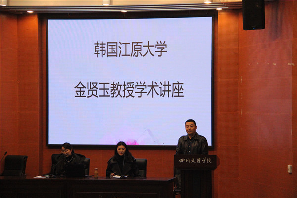 下午,金贤玉教授在学术报告B厅为学院师生作了题为“音乐创作与舞台表演”学术讲座,全面介绍了韩国江原国立大学的学科课程设制、学校的学习风气等,重点讲解了其原创作品《荞麦花开》,播放了《荞麦花开》在俄罗斯公演的演出视频。讲座结束后,金教授对现场师生的提问进行了详尽解答。