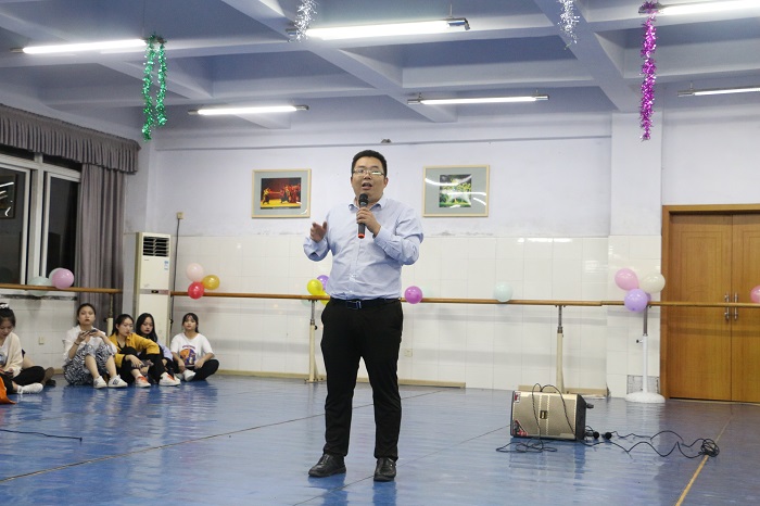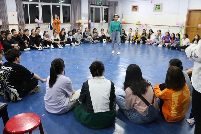 学工办主任弓腊梅、辅导员祝成毅、舞蹈专业教师陈子瑶以及全体新生参加了晚会。