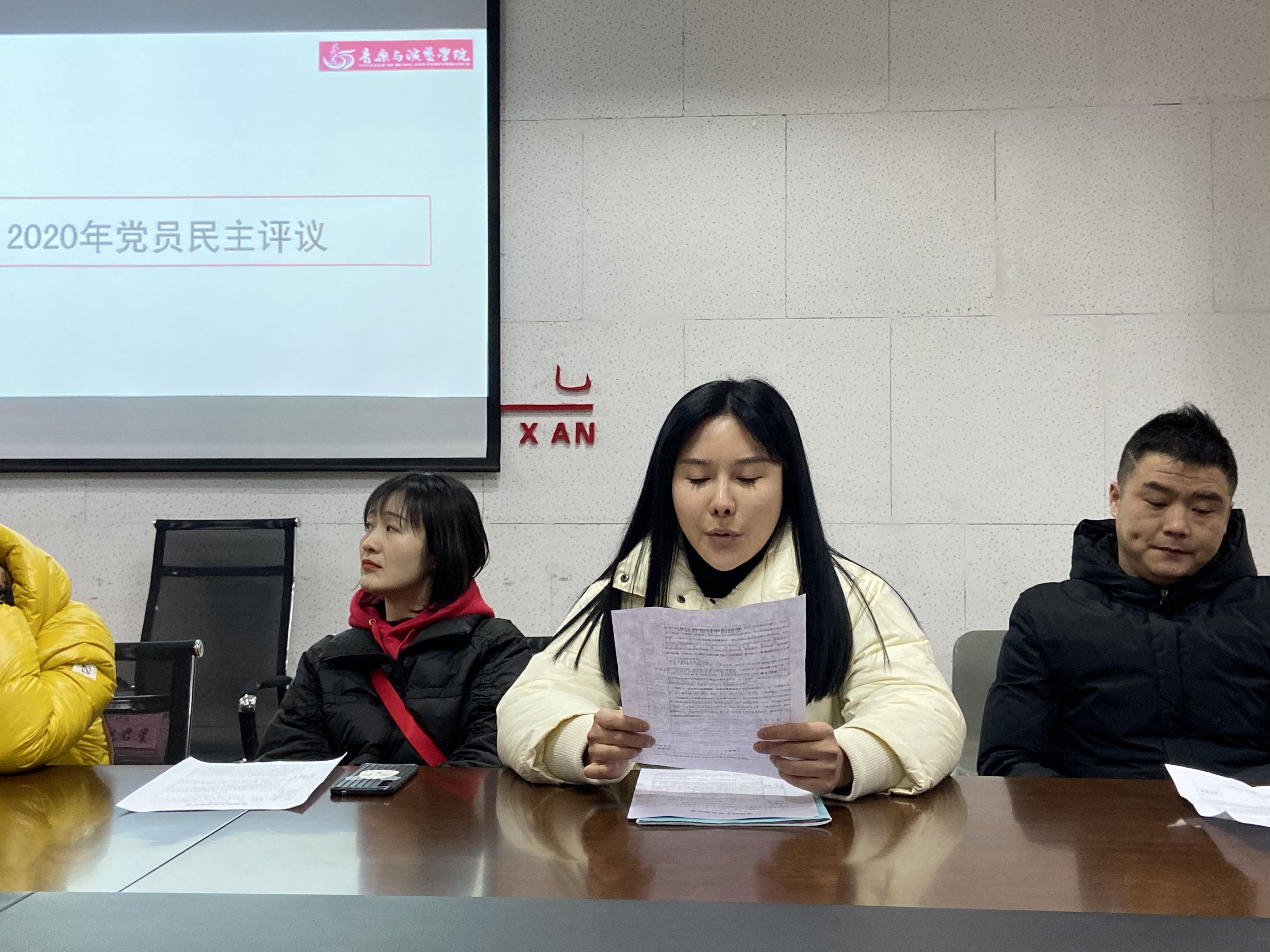 2021年1月6日下午15:30音乐与演艺公司党支部在音乐楼4039室召开了2020年度组织生活会和民主评议党员大会。会议由支部书记阮碧辉同志主持。