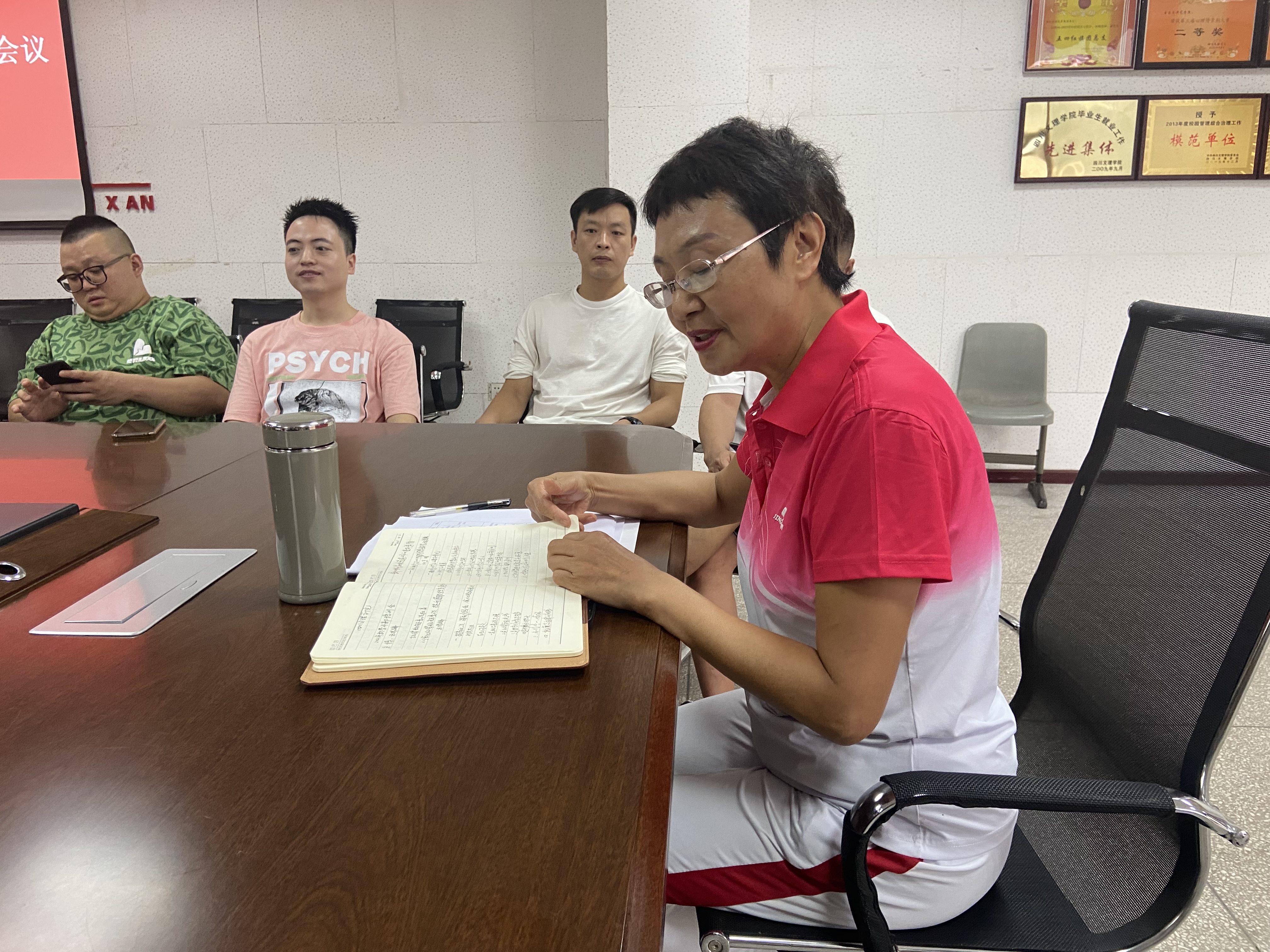 阮碧辉同志传达学习了9月3日党委副书记、董事长刁永锋对学校上半年工作作全面总结,对新学期工作进行安排部署以及党委书记王成端的总结讲话精神。