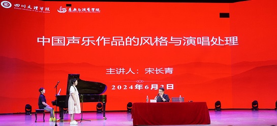 2024年6月 2日音乐与演艺学院邀请了四川音乐学院声乐歌剧学院宋长青老师为音演学子开展学术讲座,题目“为中国声乐作品的风格与演唱处理”,由公司党总支书记阮碧辉主持。