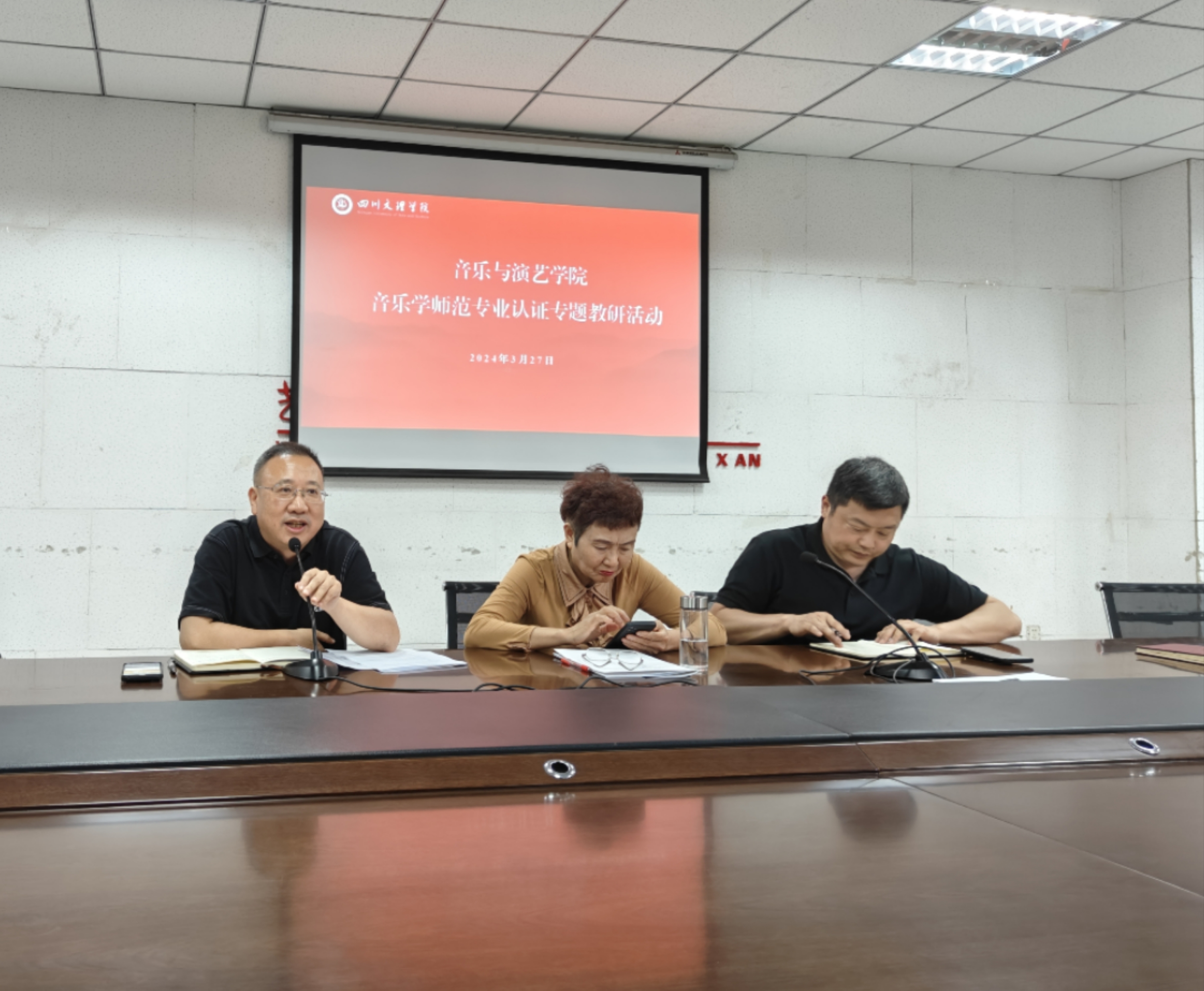 为进一步推动音乐学专业认证工作,3月27日,音乐学教研室全体教师于四楼会议室开展师范专业认证专题教研活动,教研室围绕师范专业认证核心理念、重点内容及材料准备等相关主题进行了学习和研讨,副经理冉明参加教研活动,教研室主任刘高扬主持会议。